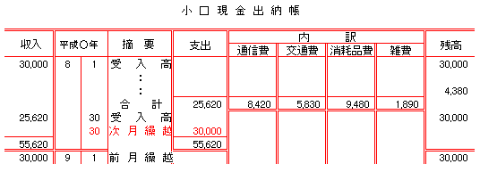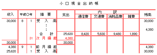 芦屋商店の小口現金出納帳の締切のうち正しいものを選びなさい。なお、芦屋商店はインプレスト−システムを採用しており、小口現金の支払報告は月末に行い、翌月初に補給している。