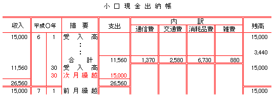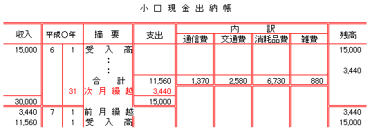 西宮商店の小口現金出納帳の締切のうち正しいものを選びなさい。なお、西宮商店は定額資金前渡制を採用しており、月末に支払報告を行い小口現金を補給している。