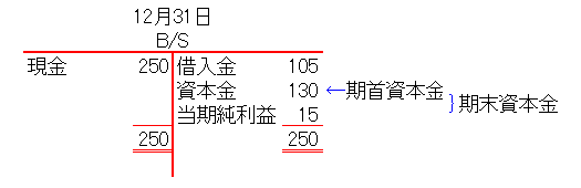 上記の例でいえば、正味財産としての「資本金」が、期末145−期首130=15円増加しているのですから、子供であれば成長具合が、企業ですから成長=儲け、すなわち当期純利益が判明します。したがって、次の公式が導き出されます。