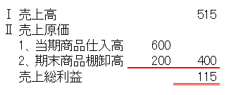 (例2)上記の商品の内2/3 を515円にて現金販売をした。