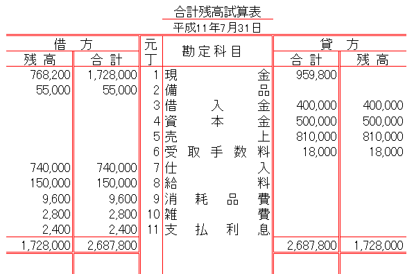 (イ)試算表は、仕訳から元帳転記が正しく行われたか否かを確めるために作成されることは、すでに説明したとおりです。元帳の記録・計算が正確に行われていて、はじめて正確な損益計算書と貸借対照表が作成できるのですから、欠くことのできない手順として位置付けられています。