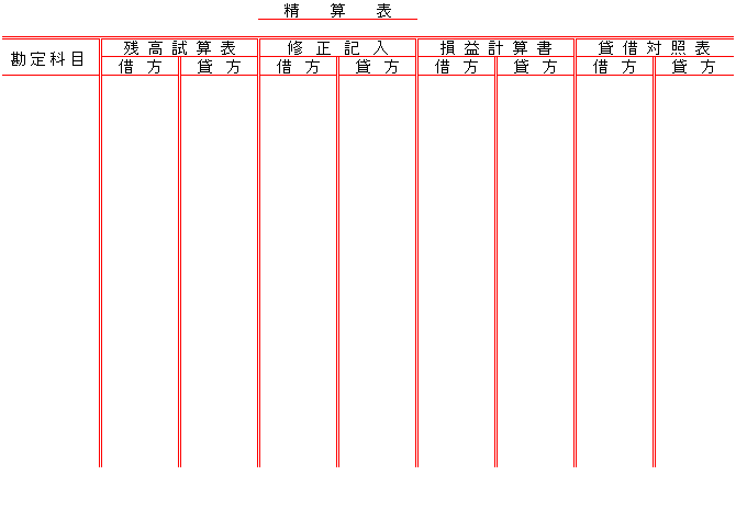 8桁(欄)精算表の形式は、次のとおりです。