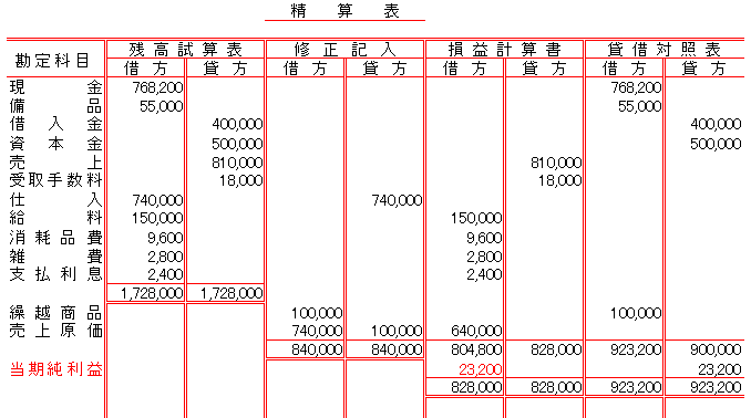 元帳締切りは、事前に作成された「精算表」で表わされた損益計算書と貸借対照表を元帳の上に表現することです。