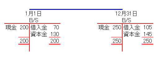 例えば、1月1日の貸借対照表と12月31日のそれとを比較してみます。