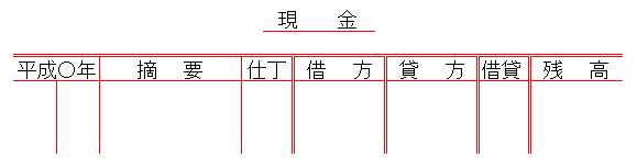 | (残 高) | ××× | (現 金) | ××× |